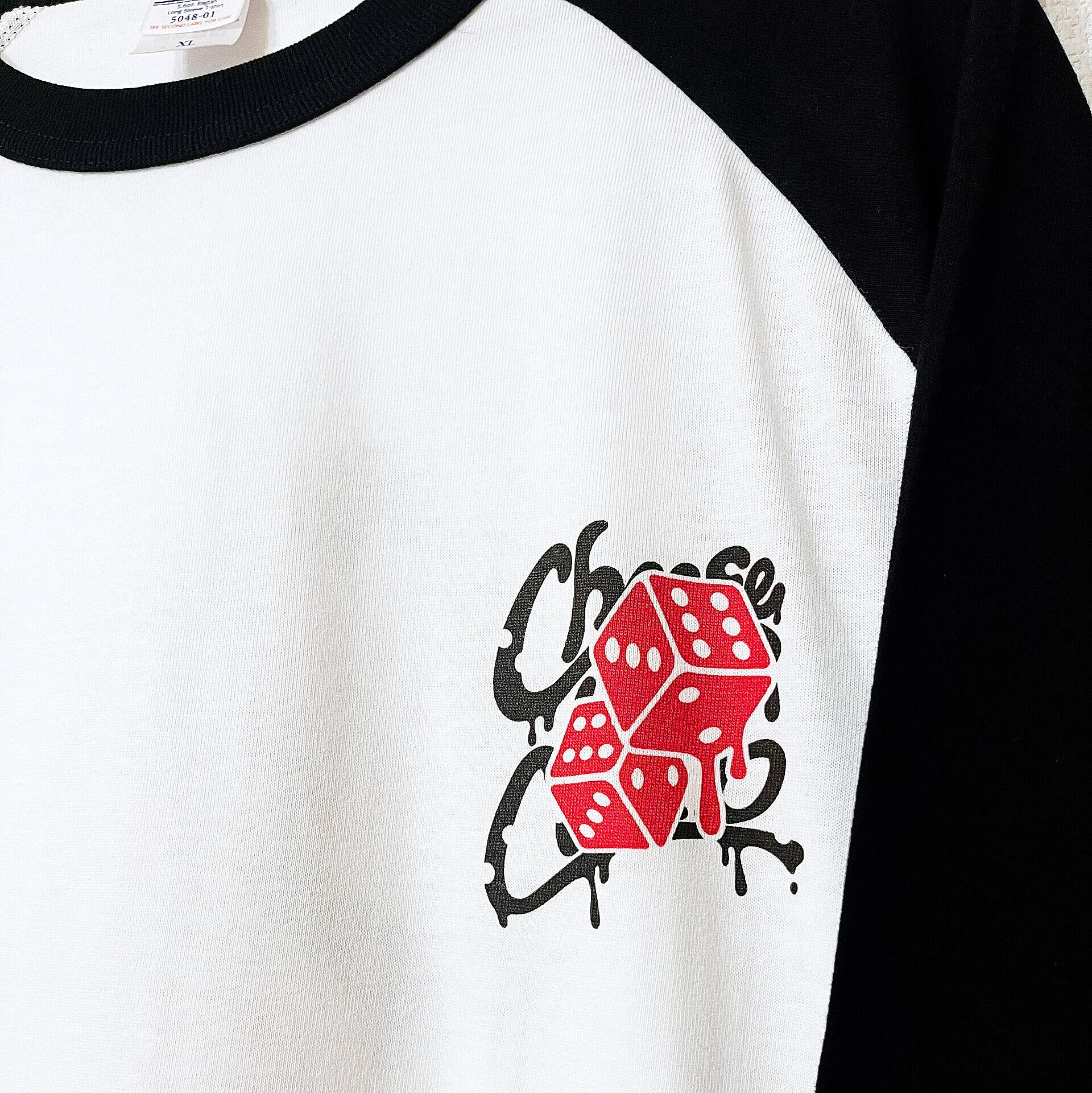 トレンドのラグランロングスリーブのボディのブラックに映える赤のプリントがクールな1枚。
